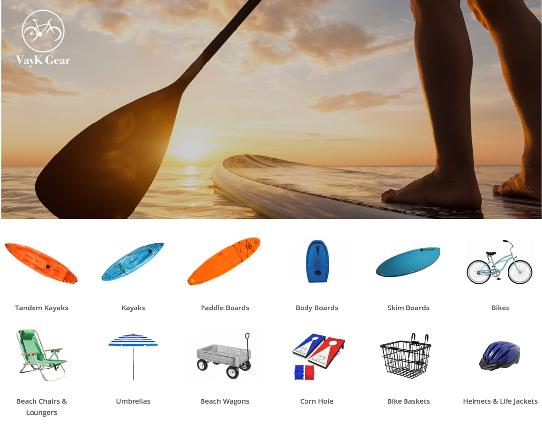 **Some exclusions apply. Edisto properties, as well as some Isle of Palms and Folly beach properties do not participate in this program. Look for the VayK Logo on each property page. Reservation dates must fall within the minimum and maximum date range to be valid for the credit. Must reserve gear at least 48 hours in advance of arrival date.