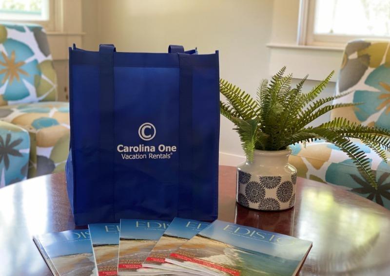 Upon your arrival to any Carolina One Edisto Vacation rental, you will receive a complimentary tote bag filled with a few starter items (1 roll of paper towels, 1 roll of toilet paper, dish soap, and hand soap). The tote is yours to keep and doubles as a reusable shopping bag during and after your stay!